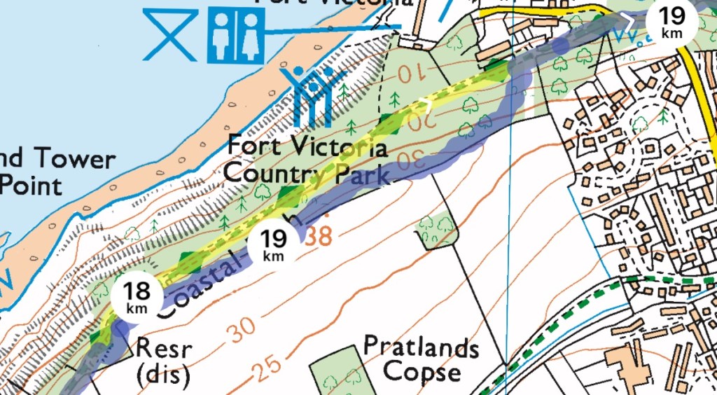 This second stage of the walk towards Yarmouth was more mixed. Some of it was on pavements above shingle beaches, so it was a bit built up but still enjoyable being right next to the sea. Some of the coast was taken over by a hideous holiday home development. Right after that, we took a detour on a woodland path and I appreciated the shade.