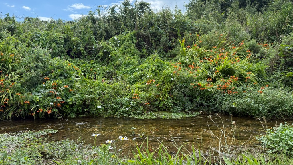 The singular highlight of the whole walk was Winkle Street. I have decided to retire there, in one of the thatched cottages overlooking a clear stream lined with montbretia and naked lady lilies. It was an idyll.