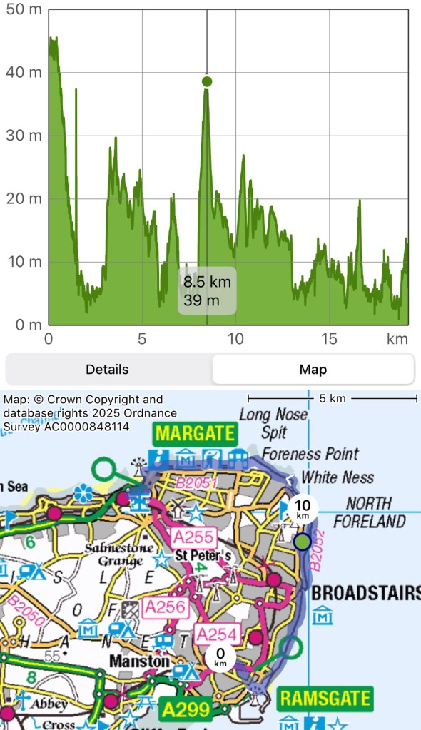 Duration: 11:37 (included lots of wandering, ice cream and dinner in Margate, and a long lunch in Broadstairs)