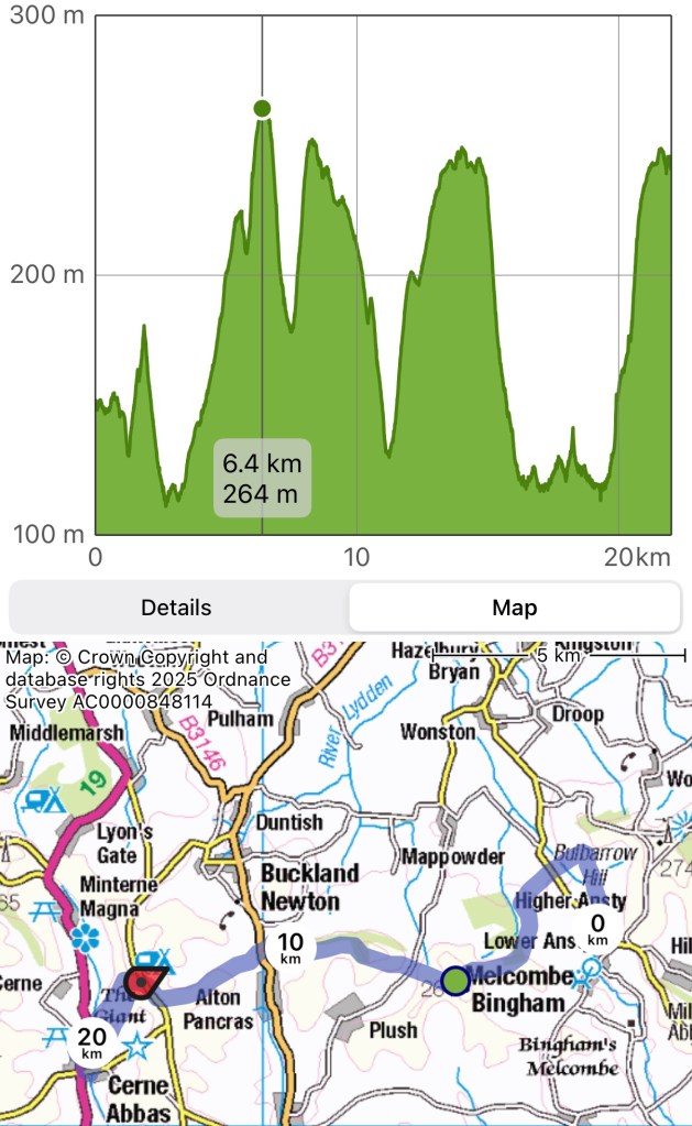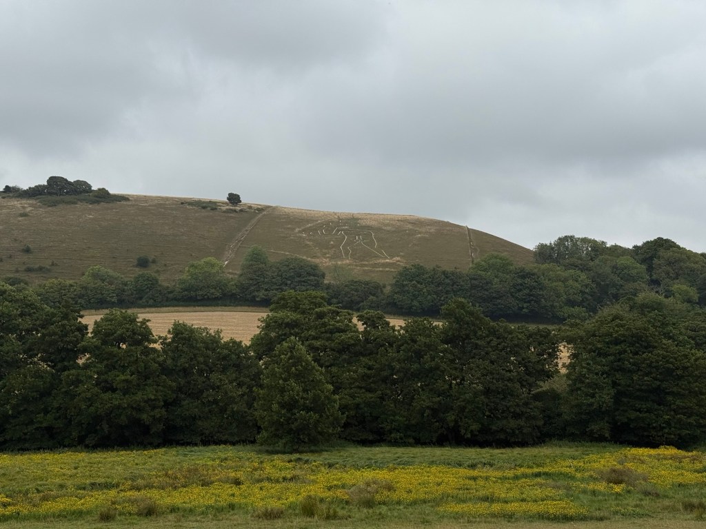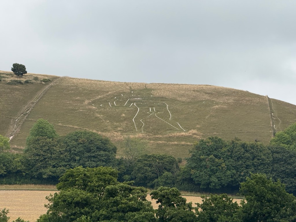 We arrived at the Giant’s Head campsite on the ridge line (altitude 240 m). After making camp, we walked down to Cerne Abbas to see its namesake, the chalk giant with two clubs.