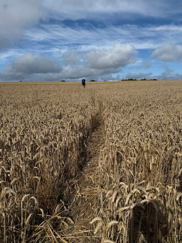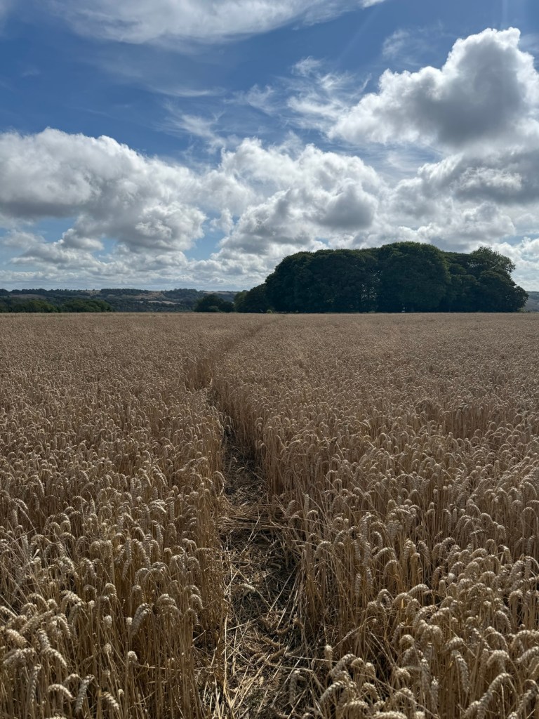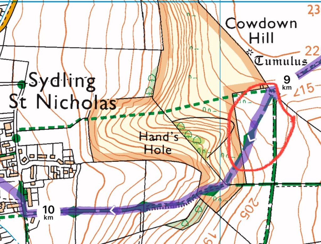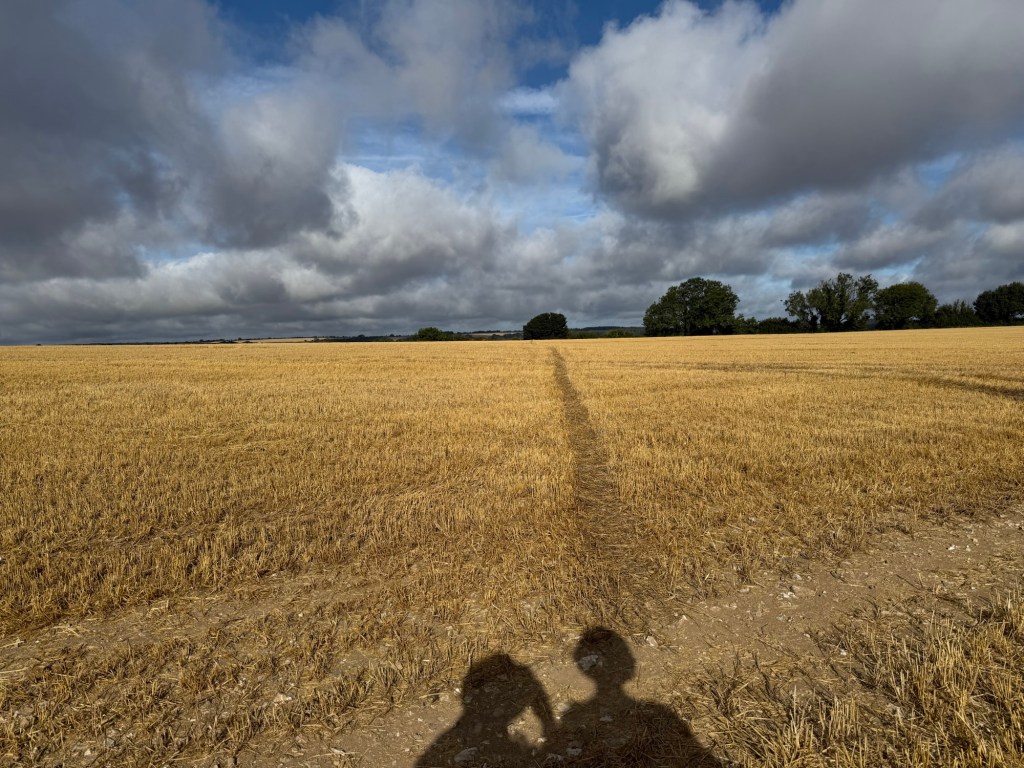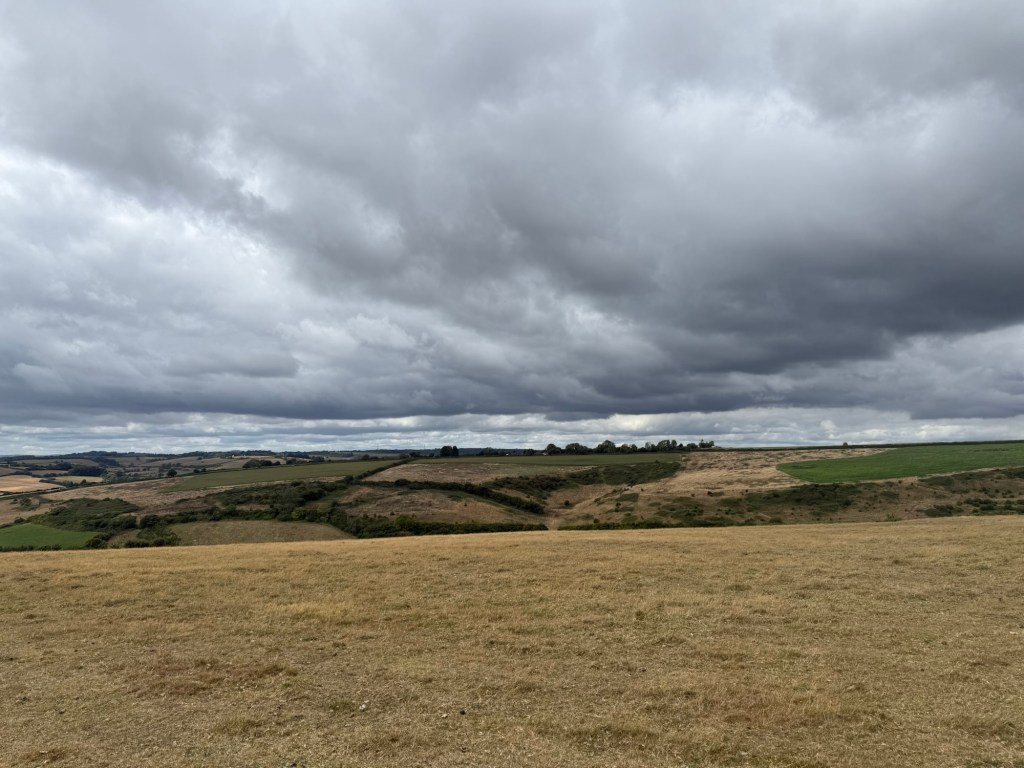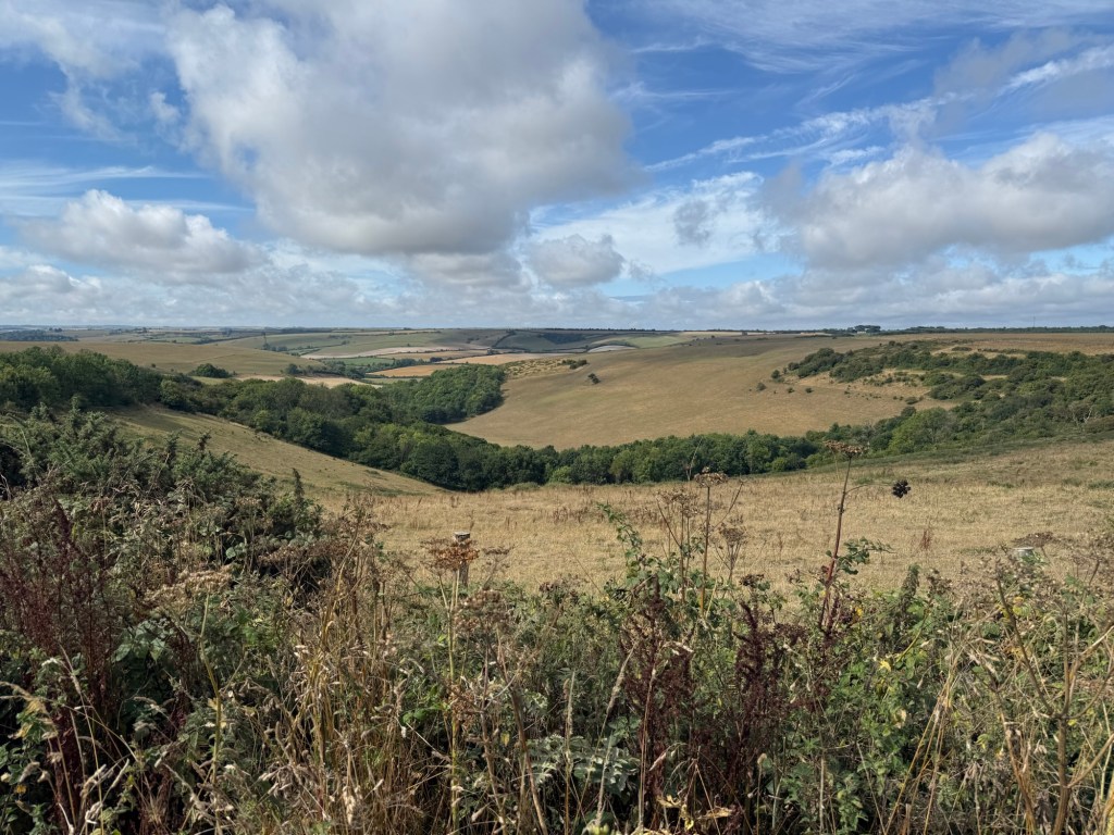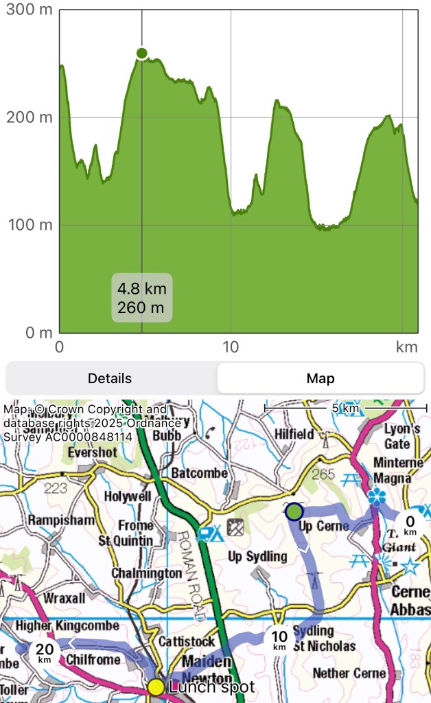 Blowy and big clouds in the morning but we knew it was going to be a warmer day. We started from the same field above Cerne Abbas but aimed northwest for Minterne Parva.