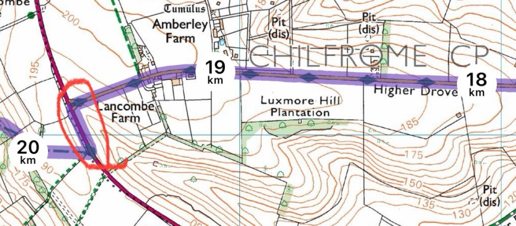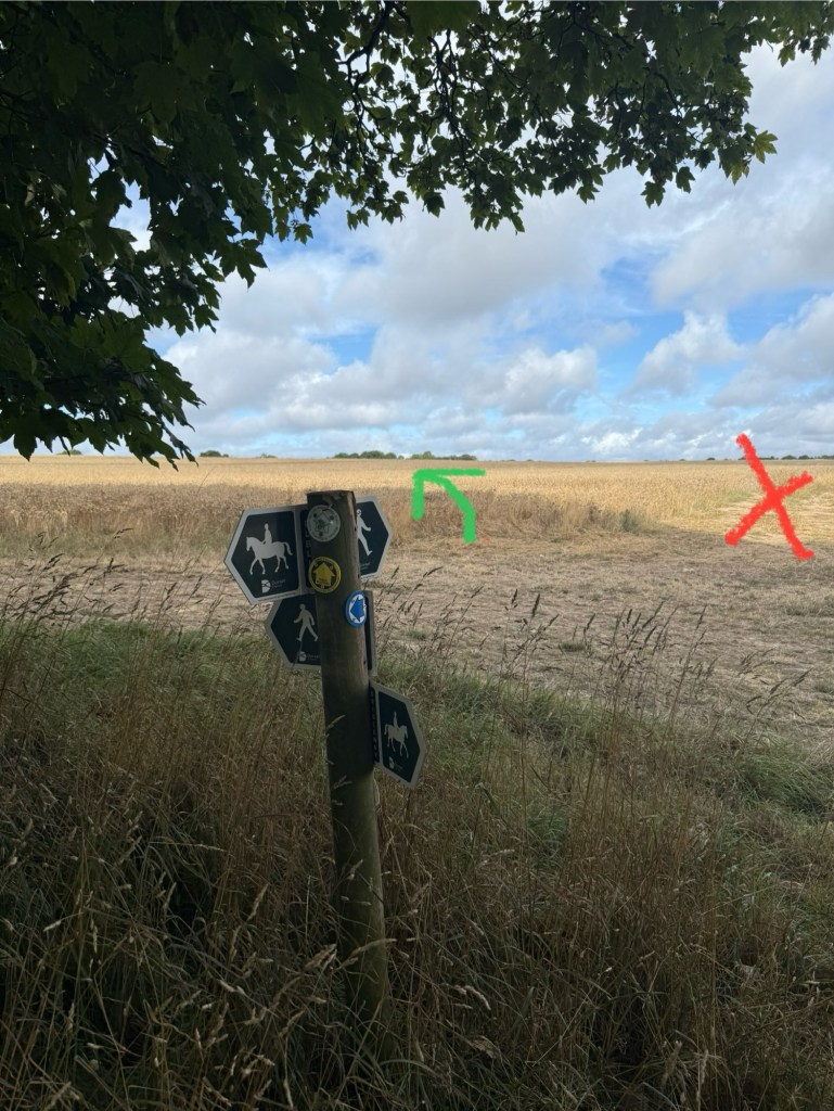 Worse, the way mark for the other direction pointed to a different path that we just came from, suggesting we had not been on the Ridgeway this morning. Not sure what could have happened at this junction to have caused this chaos.