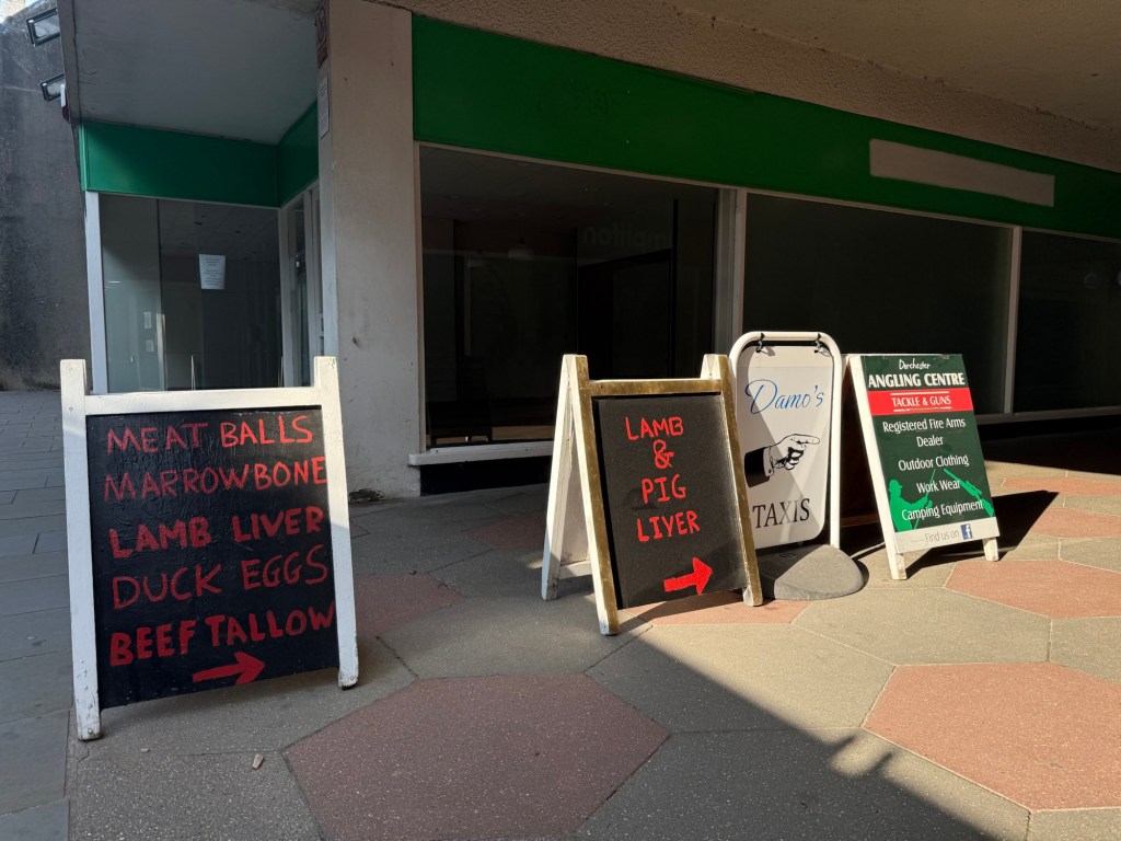 We ended up having takeaway fish and chips on a bench on Fordington Green, after walking about the town centre and getting some more gear at Great Western Camping, an old-timer outdoorsy shop still run by the same family. The chip shop also looked to be family run, everyone uniformed and capped, also friendly and efficient. Quiet West Country vitality is alive and well in Dorchester.