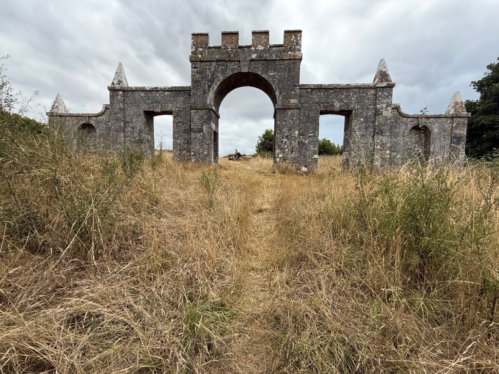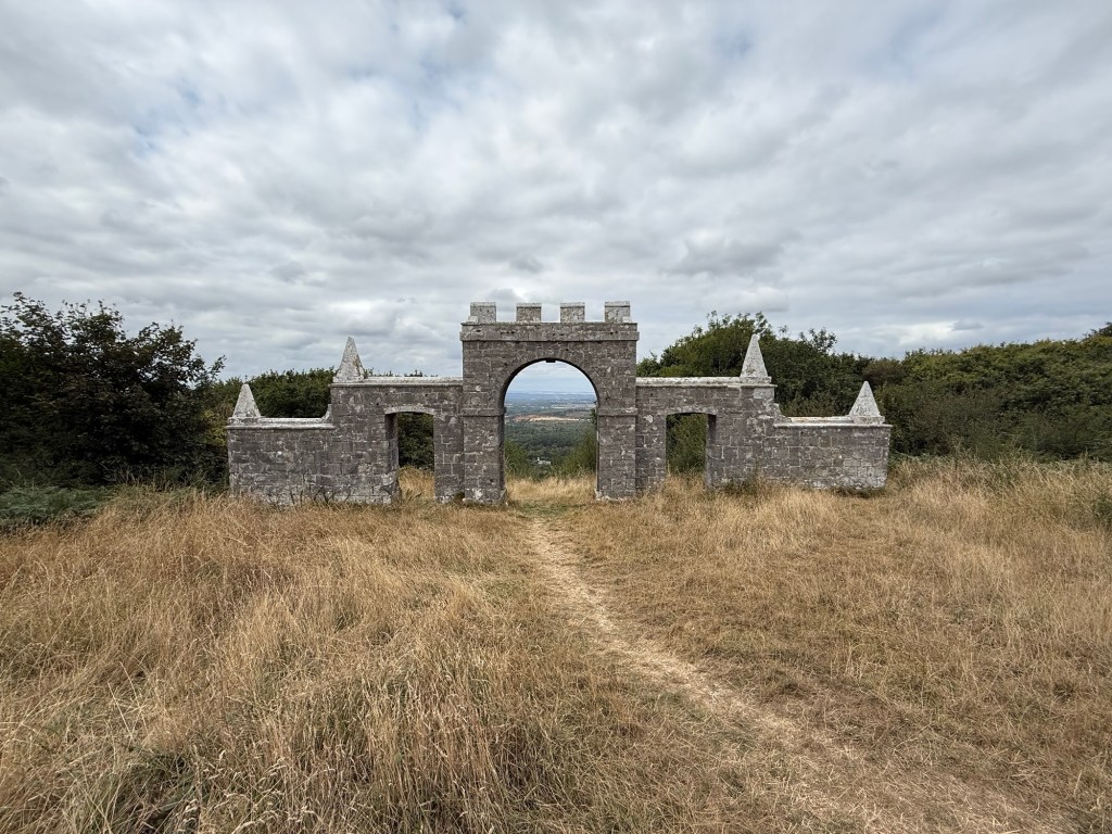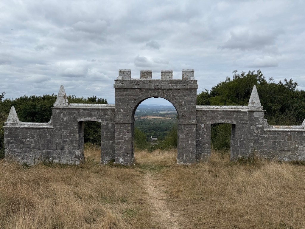 We now turned north for the Purbeck Hills. The folly, Grange Arch, was completely unexpected and a magnificent backdrop for a break.