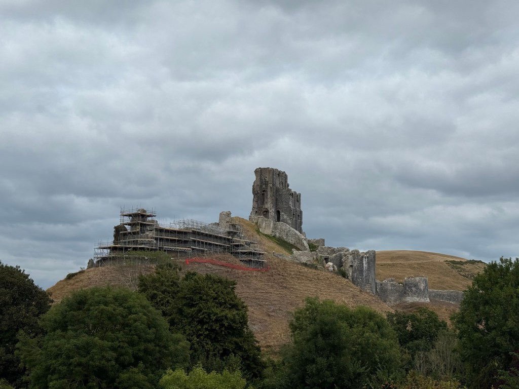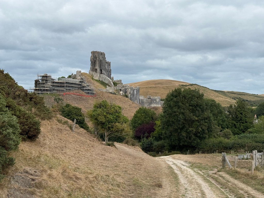 The Purbeck Hills briefly dipped and rose into the ruins of Corfe Castle. It was certainly an formidable pile of ruins, and all the more so because of its position between the hills. This was the eye of Purbeck.