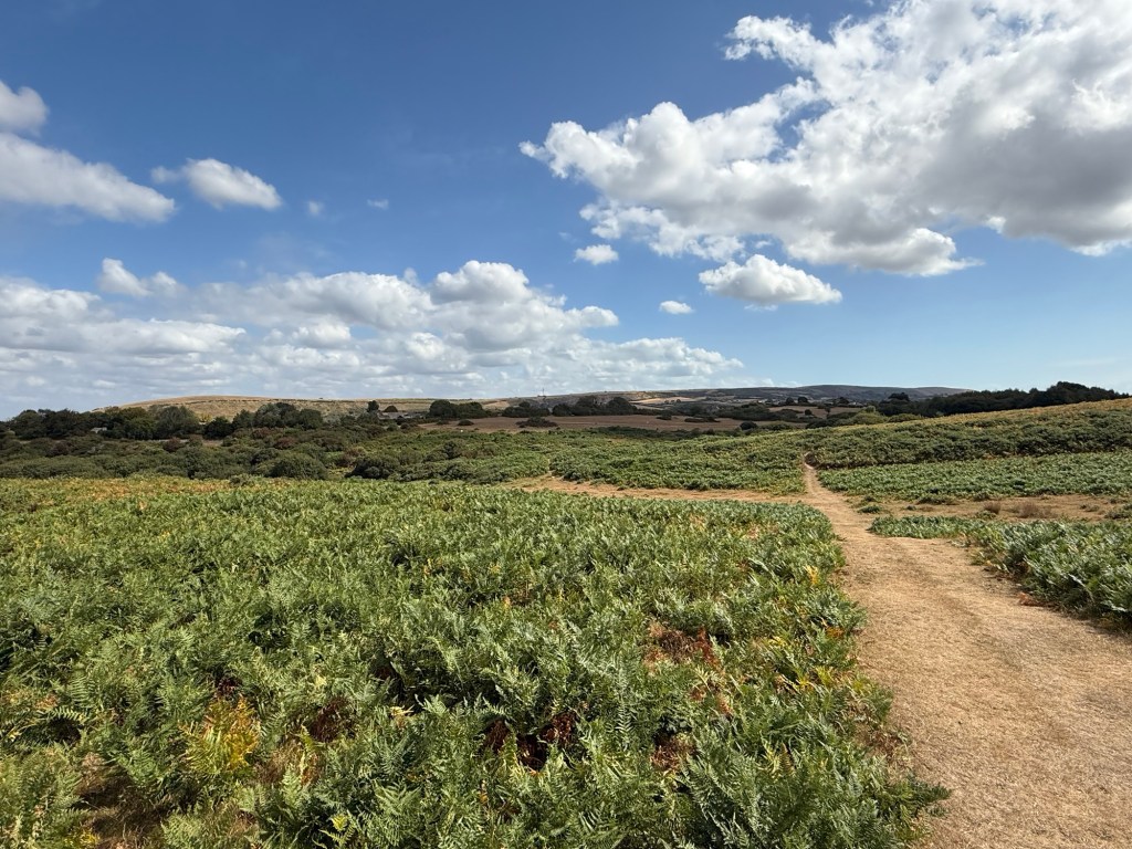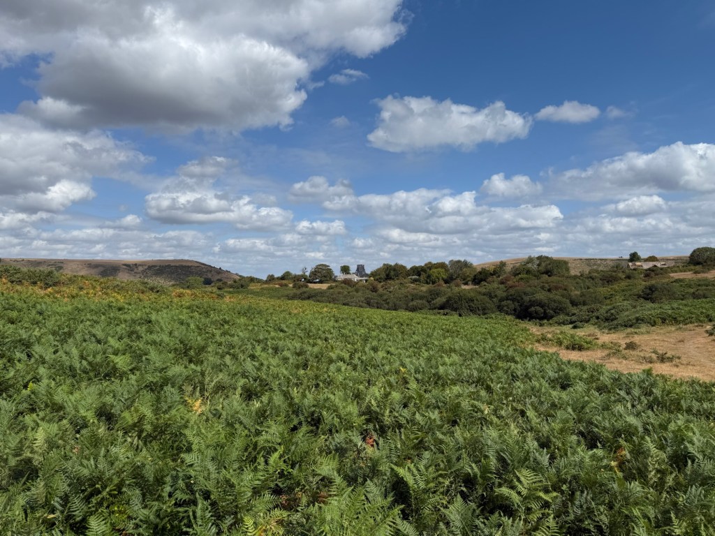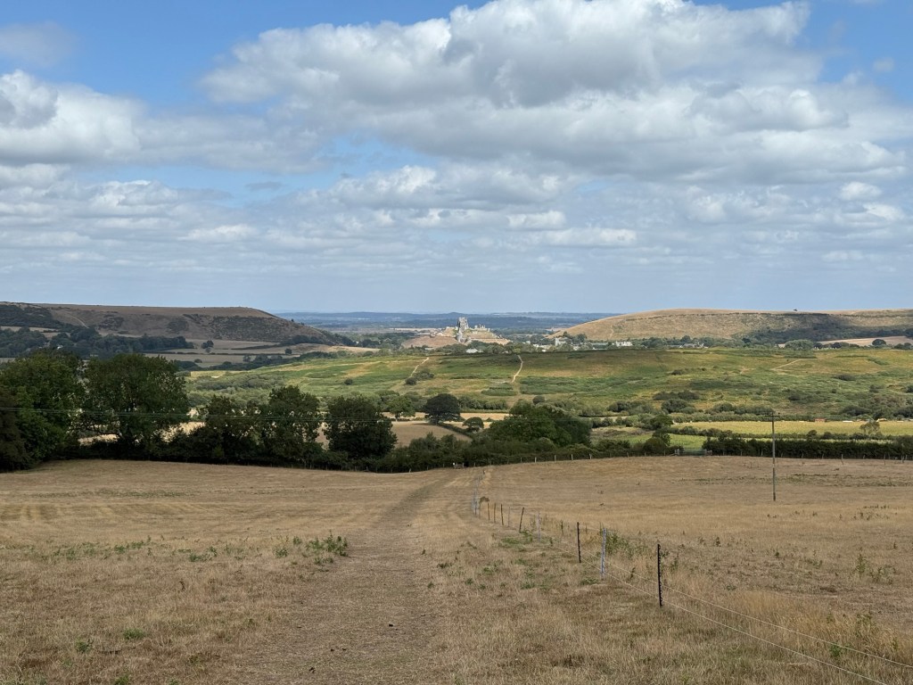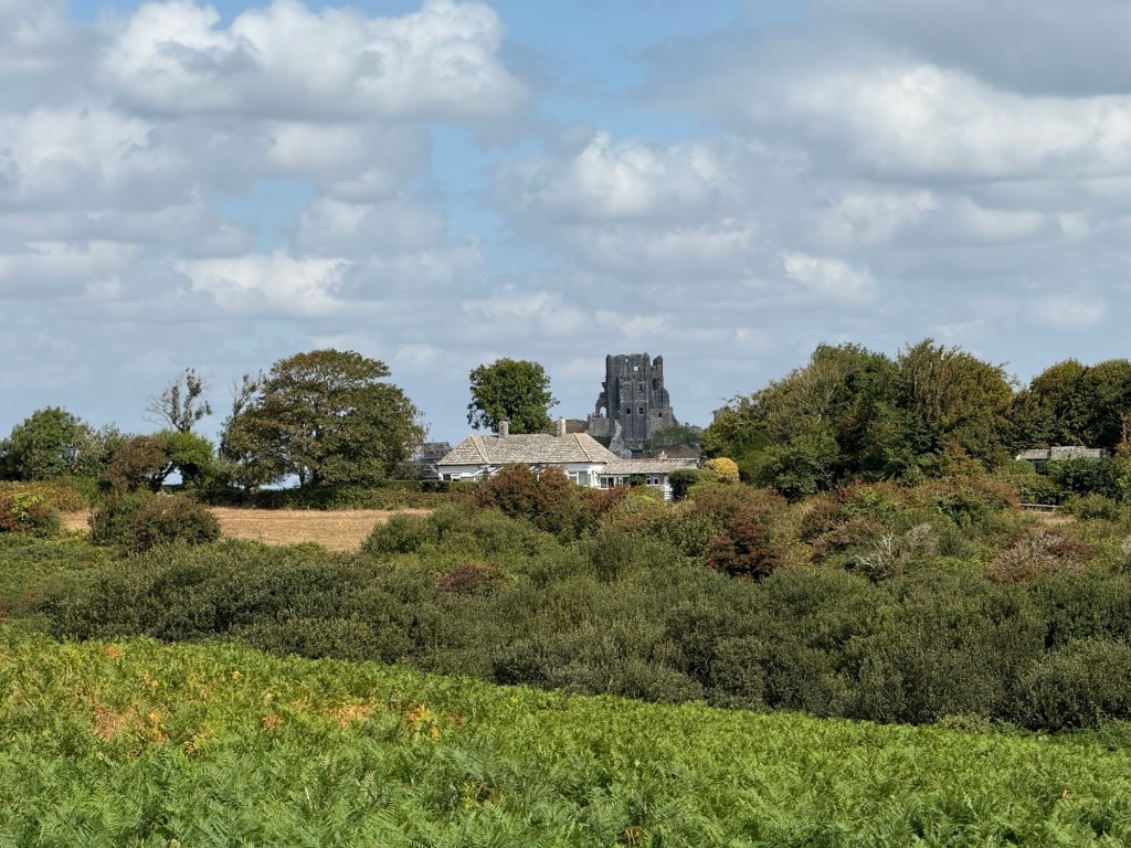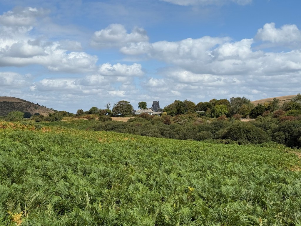 Leaving the town through Corfe Common in the south, the castle still dominated. The paths shown in the OS Maps all had been diverted, so just go in your general direction.