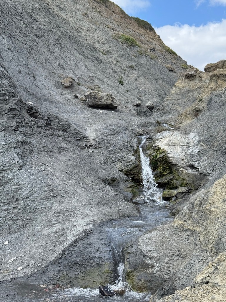 We wanted to stop at Chapman’s Pool especially and it did not disappoint. The beach was part sandy, part shingle and part rocky. It was backed against a black cliff of soft and crumbly slate that had a wobble and rockfall while we were there. Without all the other visitors there, it would have been wild and bleak (and still beautiful).