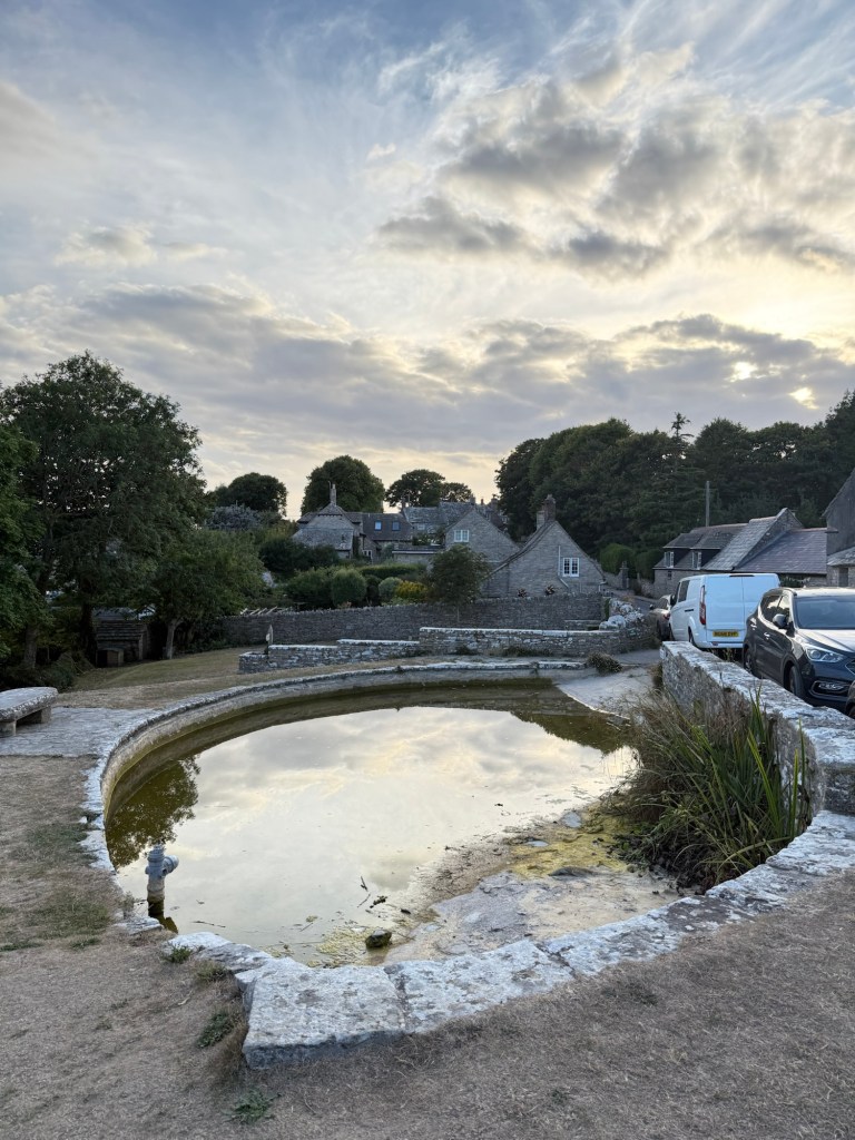 The greyness of the Purbeck stones and tiles were the most stark on the houses of Worth Matravers. They gave no relief from the expansive and parched landscape; instead together they wove an austere kind of beauty, together with the opprresive heat from the enveloping sky. It was a harsh, elemental place.